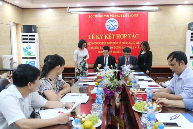 Chiều ngày 10/5/2019 tại hội trưởng tầng 3, Trường Đào tạo, Bồi dưỡng cán bộ quản lý Thông tin và Truyền thông ( Trường) đã ký kết biên bản thỏa thuận hợp tác với Viện Công nghiệp phần mềm và Nội dung số Việt Nam (Viện)