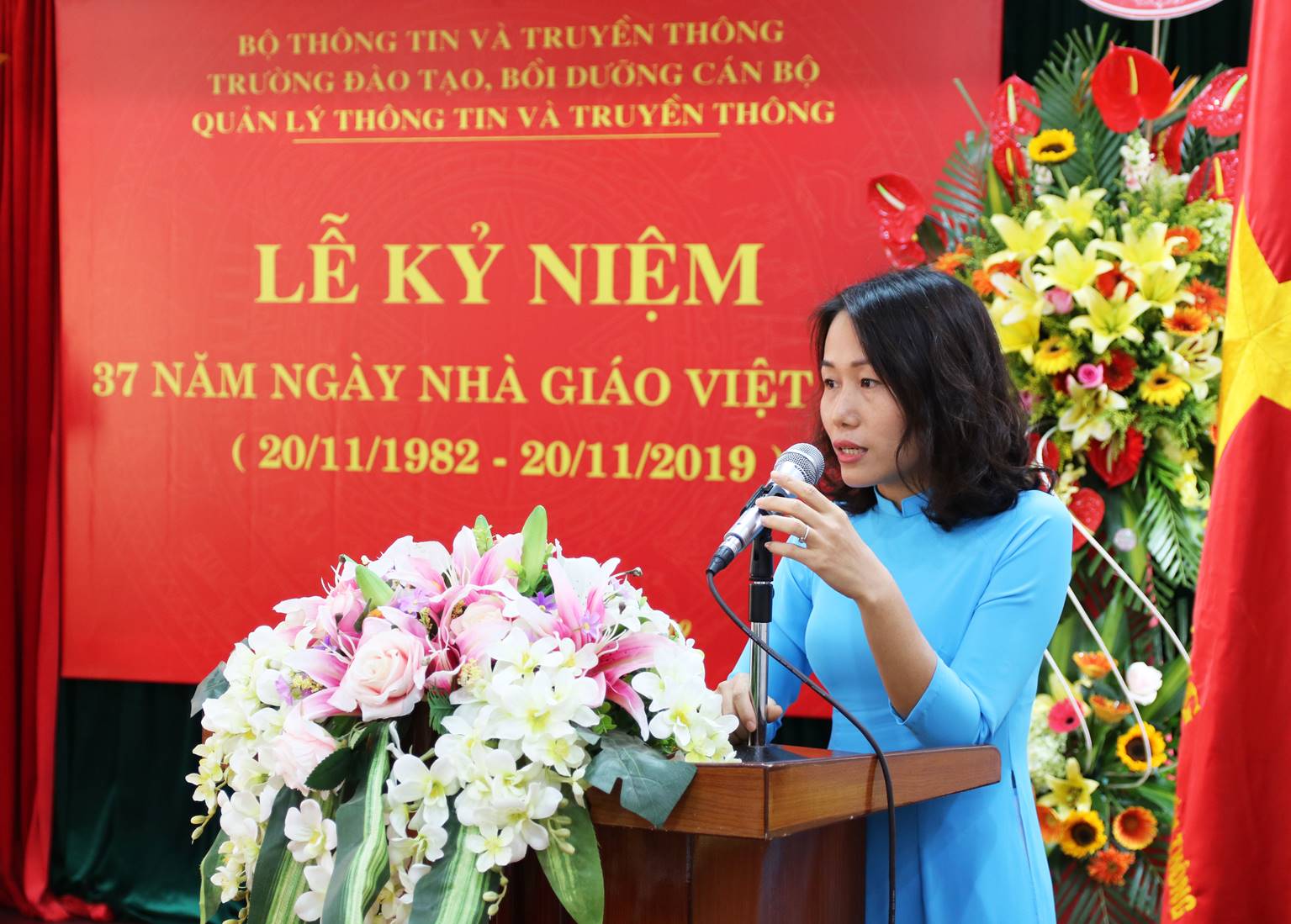 Hòa chung trong không khí cả nước chào mừng ngày Nhà giáo Việt Nam 20-11, sáng 20/11/2019, Trường Đào tạo, Bồi dưỡng cán bộ quản lý Thông tin và Truyền thông đã long trọng tổ chức Lễ kỷ niệm 37 năm Ngày Nhà giáo Việt Nam (20/11/1982 – 20/11/2019).
