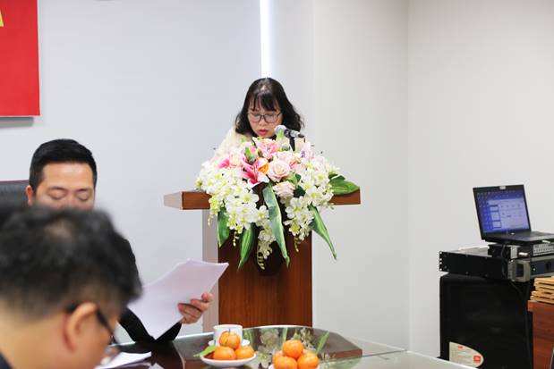 Đồng chí Lê Ngọc Bảo, Chi ủy viên Chi bộ trình bày dự thảo Báo cáo