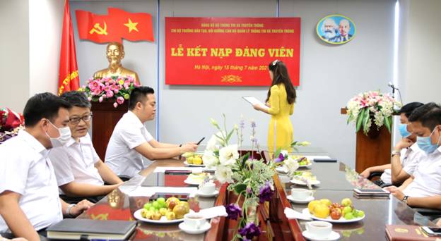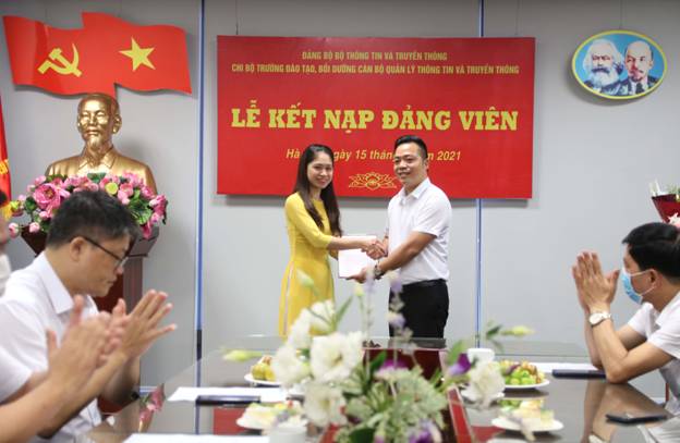 Sau một thời gian phấn đấu và rèn luyện, với sự giúp đỡ và hướng dẫn của các đồng chí Đảng viên trong Chi bộ và được sự phê chuẩn của Đảng ủy Thông tin và Truyền thông;  Sáng ngày 15/07/2021 tại trụ sở làm viêc,Chi bộ  Trường Đào tạo, Bồi dưỡng cán bộ quản lý Thông tin và Truyền thông (Chi bộ Trường) đã long trọng tổ chức Lễ kết nạp đảng cho 02 quần chúng ưu tú Trần Thị Thanh Hương và Nguyễn Thị Kim Oanh.