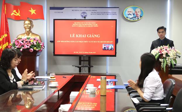 Sáng ngày 26/10/2021, tại trụ sở làm việc,Trường Đào tạo, Bồi dưỡng cán bộ quản lý Thông tin và Truyền thông tổ chức Lễ Khai giảng trực tuyến lớp “Bồi dưỡng nâng cao nhận thức và tư duy về chuyển đổi số” cho cho đội ngũ  công chức của Cục Bưu điện Trung ương