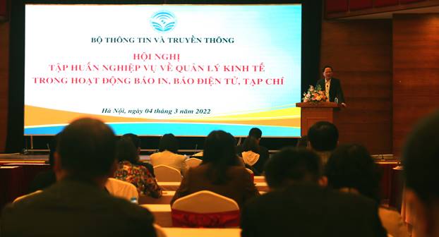 Sáng ngày 4/03, tại Hà Nội, Bộ Thông tn và Truyền thông tổ chức Hội nghị tập huấn nghiệp vụ về quản lý kinh tế trong hoạt động báo in, báo điện tử, tạp chí cho các quan tham mưu quản lý về hoạt động thông tin, tuyên truyền; các cơ quan tham mưu quản lý tài chính; các cơ quan báo chí, tạp chí…. với mục tiêu triển khai, hướng dẫn thực hiện một số cơ chế, chính sách của Nhà nước liên quan đến hoạt động kinh tế của các cơ quan báo in, điện tử; đáp ứng yêu cầu đổi mới cơ chế quản lý kinh tế từ giao kinh phí thường xuyên sang giao nhiệm vụ đặt hàng hoặc đấu thầu sản xuất, cung cấp dịch vụ sự nghiệp công trong lĩnh vực báo in, báo điện tử và triển khai thực hiện Thông tư số 18/2021/TT-BTTTT ngày 30/11/2021 của Bộ trưởng Bộ Thông tin và Truyền thông về định mức kinh tế – kỹ thuật hoạt động báo in, báo điện tử.