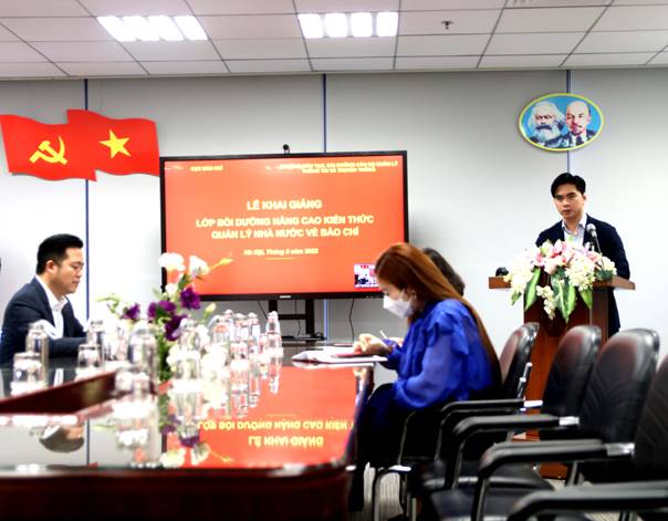 Phát biểu Khai giảng lớp học, TS. Đinh Đức Thiện- Hiệu trưởng Trường Đào tạo, Bồi dưỡng cán bộ quản lý Thông tin và Truyền thông nêu rõ: Lớp học được tổ chức với mục tiêu trang bị cập nhật những kiến thức chung về đường lối, chủ trương chính sách của Đảng và pháp luật của nhà nước về lĩnh vực báo chí; Cung cấp kiến thức về nghiệp vụ quản lý báo chí và kỹ năng cơ bản về lãnh đạo, quản lý cơ quan báo chí cho học viên sẽ được bổ nhiệm là lãnh đạo các cơ quan báo chí cũng như đáp ứng điều kiện để bổ nhiệm lãnh đạo các cơ quan báo chí (theo quy định về điều kiện bổ nhiệm lãnh đạo cơ quan báo chí tại điều 6, Quyết định số 75-QĐ/TW ngày 21/8/2007 của ban bí thư Trung ương ban hành “Quy chế bổ nhiệm, miễn nhiệm, khen thưởng, kỷ luật cán bộ lãnh đạo cơ quan báo chí”). Bên cạnh đó, thông qua lớp học các học viên được chia sẻ kinh nghiệm, kỹ năng để nâng cao năng lực và hiệu quả cho công tác quản lý báo chí. Để đảm bảo sự nghiêm túc và tập trung cao cho toàn khóa học, ông đề nghị các học viên hãy tận dụng thời gian học hỏi, trao đổi và thảo luận được nhiều nhất với giảng viên. Kết thúc khóa học, học viên đủ điều kiện sẽ được Trường Đào tạo, Bồi dưỡng cán bộ quản lý Thông tin và Truyền thông cấp chứng chỉ hoàn thành khóa học.