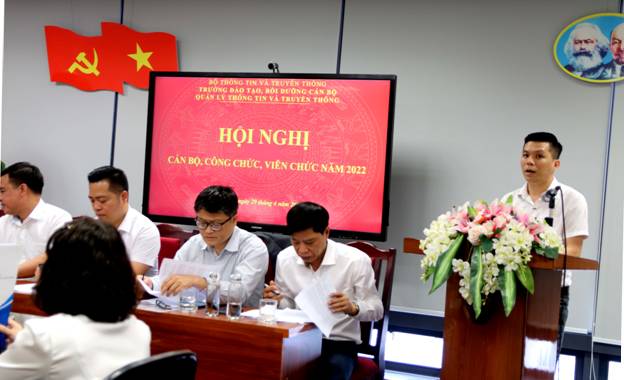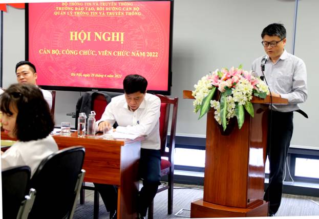 Sáng ngày 29/4, tại trụ sở làm việc, Trường Đào tạo, Bồi dưỡng cán bộ quản lý Thông tin và Truyền thông tổ chức Hội nghị cán bộ công chức, viên chức năm 2022.