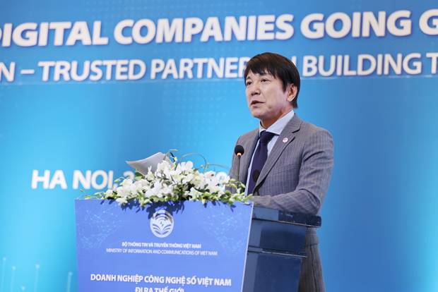 Phát biểu chỉ đạo Hội nghị, Bộ trưởng Nguyễn Mạnh Hùng đã chỉ ra nguyên nhân tại sao các doanh nghiệp công nghệ số Việt Nam phải đi ra nước ngoài. Đi ra nước ngoài là cạnh tranh với những người xuất sắc nhất, từ đó chúng ta trở nên xuất sắc, có năng lực cạnh tranh quốc tế. Có năng lực cạnh tranh quốc tế chúng ta mới tồn tại được lâu dài ở thị trường trong nước. Theo Bộ trưởng, “Đi ra nước ngoài là mang tri thức và công nghệ số của Việt Nam đi mở cõi, để Việt Nam đóng góp cho sự phát triển của nhân loại. Đi ra nước ngoài cũng là mở rộng không gian, mở rộng thách thức, mở rộng hệ tri thức, là học hỏi để xây dựng Việt Nam. Tất cả những cái này là để Việt Nam giỏi lên. Không đi ra nước ngoài, không cạnh tranh, không chinh phục, không có doanh thu từ thị trường nước ngoài thì Việt Nam không thể trở thành nước phát triển có thu nhập cao”.