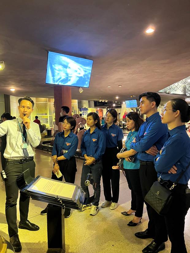 Chi đoàn Trường lắng nghe hướng dẫn viên  giới thiệu về các di vật tại bảo tàng