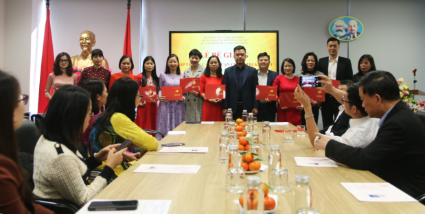 Ban cán sự lớp tặng hoa Lãnh đạo Trường