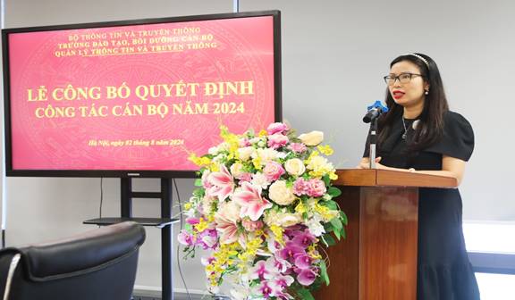 Đại diện các viên chức được điều động, bổ nhiệm, Tân Phó Trưởng phòng, phụ trách phòng Kế hoạch, Tài chính, đ/c Nguyễn Thị Thu Trang đã bày tỏ niềm vinh dự, tự hào khi được Lãnh đạo Trường tin tưởng, giao trọng trách, nhiệm vụ công tác mới cũng như bày tỏ lòng biết ơn tới viên chức, người lao động các phòng đã từng công tác đã đồng hành cùng để mỗi đồng chí được bổ nhiệm hôm nay làm tốt vai trò của mình. Đồng thời hứa trên cương vị mới sẽ tiếp tục phát huy phẩm chất, năng lực, kinh nghiệm của bản thân để cùng với tập thể các đơn vị nỗ lực, đoàn kết, phấn đấu hoàn thành xuất sắc nhiệm vụ được giao.