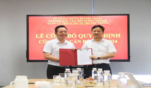 Hiệu trưởng Đinh Đức Thiện trao quyết định cho Đ/c Lê Kiên Cường