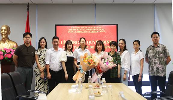 Hiệu trưởng Đinh Đức Thiện trao quyết định cho Đ/c Nguyễn Thị Bích Thủy