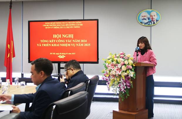 Hội nghị được nghe đồng chí Lê Ngọc Bảo – Chi ủy viên, Phó Hiệu trưởng Trường trình bày dự thảo Báo cáo Tổng kết công tác Đảng năm 2024 và Phương hướng, nhiệm vụ năm 2025. Theo đó năm 2024, Chỉ ủy đã chủ động lãnh đạo, chỉ đạo và định hướng các mặt công tác của Trường trong năm 2024, do đó Trường đã hoàn thành tốt chương trình công tác theo chức năng, nhiệm vụ. Cụ thể năm 2024, Trường đã tổ chức được với 126 lớp học cho 7.674 lượt học viên (các lớp ngân sách là 11 lớp cho 829 lượt học viên và có 115 lớp xã hội hóa cho 6.845 lượt học viên ). Đặc biệt, Trường đã hoàn thành 6 nhiệm vụ trọng tâm Bộ giao. Với phương hướng nhiệm vụ năm 2025, là năm toàn Đảng, toàn dân tiếp tục triển khai thực hiện Nghị quyết Đại hội XIII của Đảng; đặc biệt là triển khai thực hiện hợp nhất các cơ quan theo kế hoạch; bảo đảm chủ động, thống nhất, đồng thuận, dân chủ, công khai, minh bạch và làm tốt công tác chính trị, tư tưởng để đội ngũ viên chức, người lao động của Trường sau khi hợp nhất yên tâm công tác, chấp hành tốt chủ chương chính sách của Đảng, quy định của Nhà nước để cùng nhau thi đua đổi mới, sáng tạo, dám nghĩ, dám làm, dám chịu trách nhiệm trong thực thi nhiệm vụ, công vụ. Trường tiếp tục cụ thể hóa và tập trung chỉ đạo thực hiện có hiệu quả kế hoạch hoạt động của Nhà trường thực hiện Nghị quyết Đại hội XIII của Đảng, Nghị quyết Đại hội Đảng bộ cơ quan. Đổi mới công tác tuyên truyền, giáo dục chính trị, tư tưởng, sinh hoạt; nâng cao nhận thức, trách nhiệm của cán bộ, đảng viên trước yêu cầu nhiệm vụ của Nhà trường trong tình hình mới.