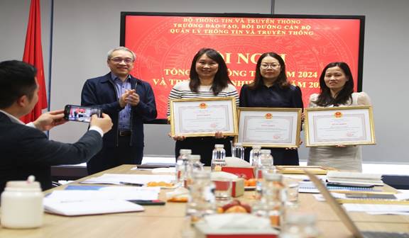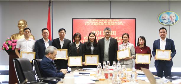 Tại Hội nghị, Trường đã tiến hành trao tặng các Danh hiệu thi đua và Hình thức khen thưởng cho các tập thể và cá nhân đạt thành tích xuất sắc đã được Bộ Thông tin và Truyền thông; Trường Đào tạo, Bồi dưỡng cán bộ quản lý Thông tin và Truyền thông trao tặng. Đây chính là sự ghi nhận, vinh danh, biểu dương là nguồn động lực to lớn để cho tập thể và các cá nhân nỗ lực phấn đấu.